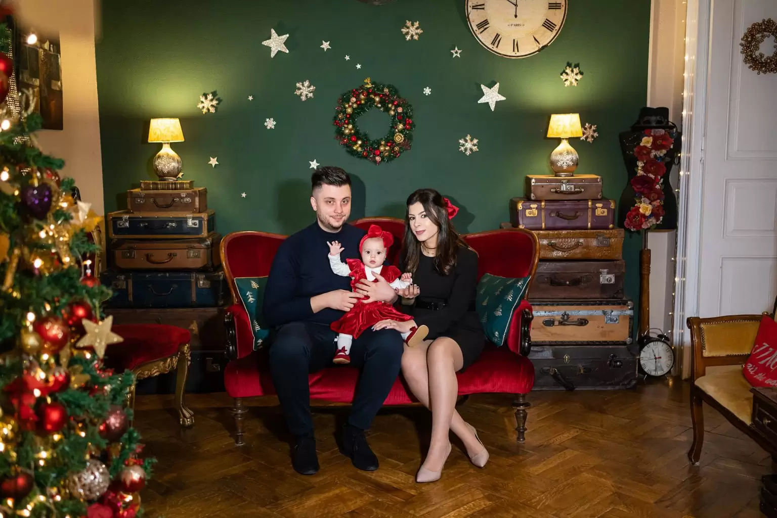 Pentru a crea atmosfera perfectă în fotografiile de Crăciun, am conceput decoruri de basm în studioul meu, folosind elemente tradiționale precum brazi împodobiți, luminițe strălucitoare și culori vibrante. Acestea au oferit un fundal fermecător pentru fiecare ședință foto, permițându-mi să surprind esența magică a acestei perioade.